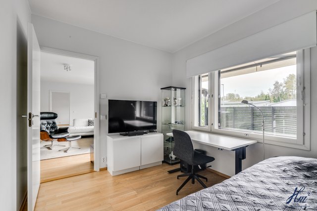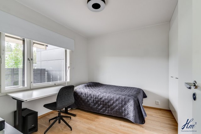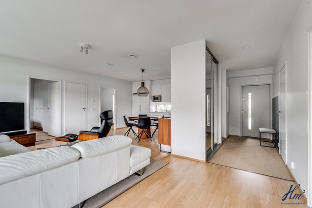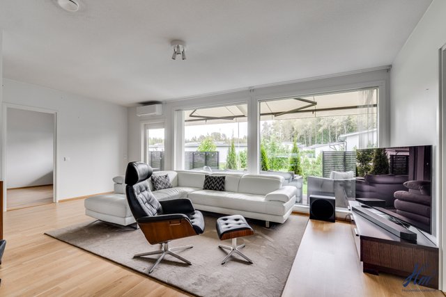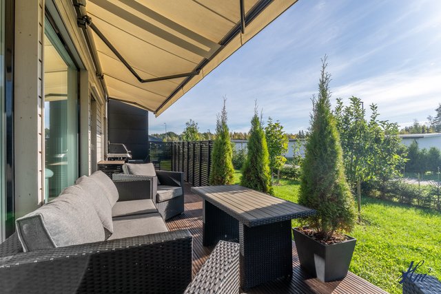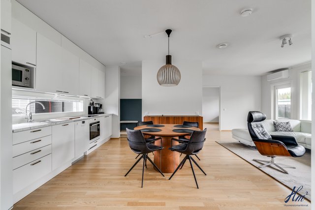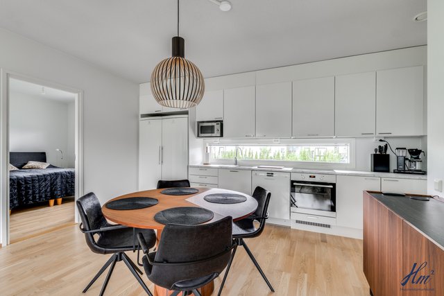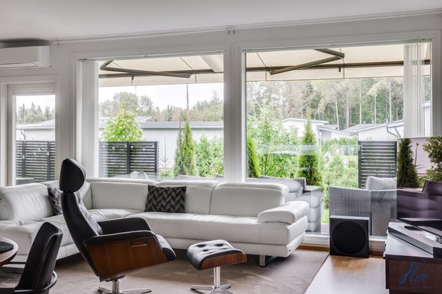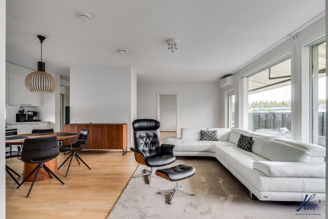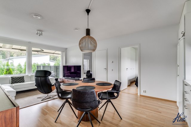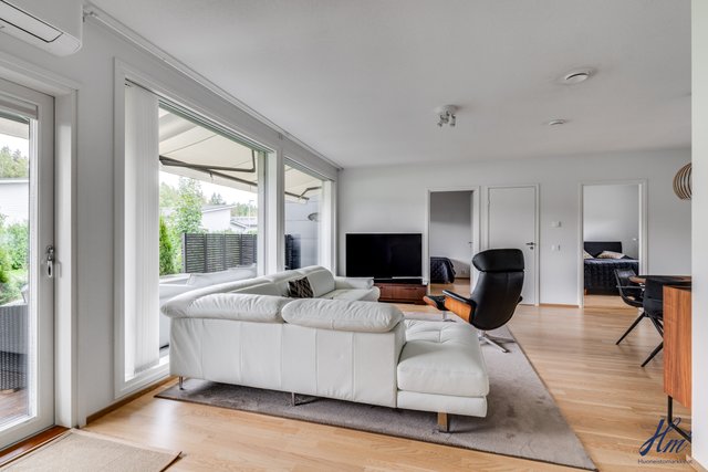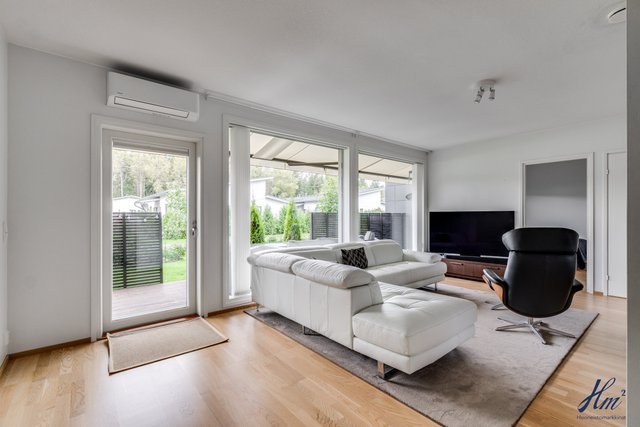 Yksitasoinen asunto ihastuttaa heti ensisilmäyksellä. Avara oleskelutila, suuret ikkunat ja kaunis piha tekevät kodista viihtyisän ja kodikkaan kodin tarjoten mutkatonta asumista.