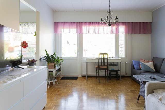 Olohuone ja ruokailutila avautuvat takapihalle, tuoden luonnonvaloa ja avaruutta sisätiloihin. Makuuhuoneen ja olohuoneen seinäpinnat on maalattu vuonna 2022. Taloyhtiössä on lämmitysmuotona kaukolämpö.