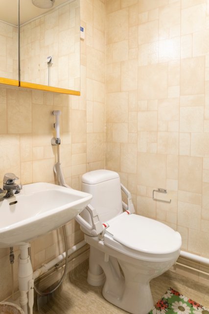 - WC-istuin, suihku, pesukoneliitäntä, peilikaappi, pesuallas, ja bidee-suihku