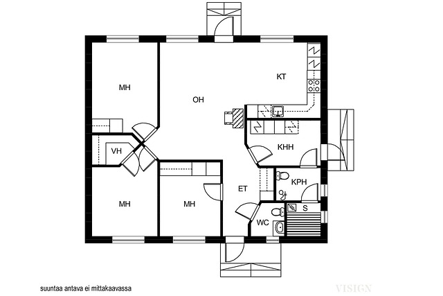 - Kerrosala rakennuspiirustusten mukaan 98 m2.