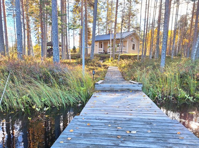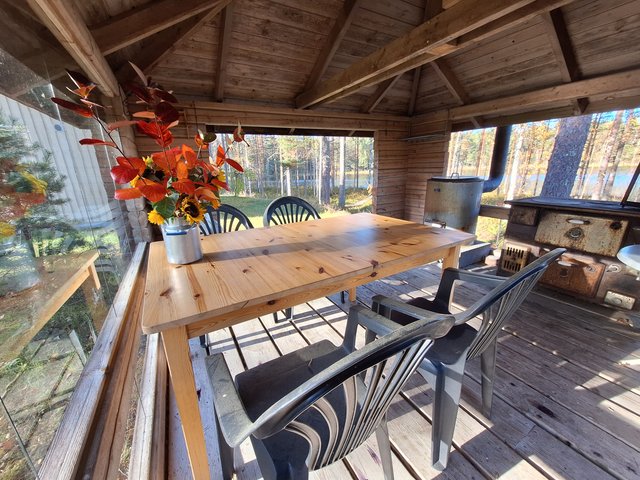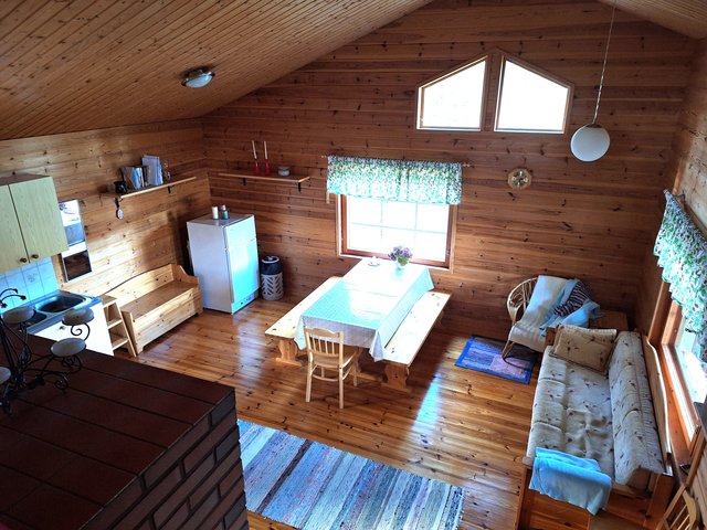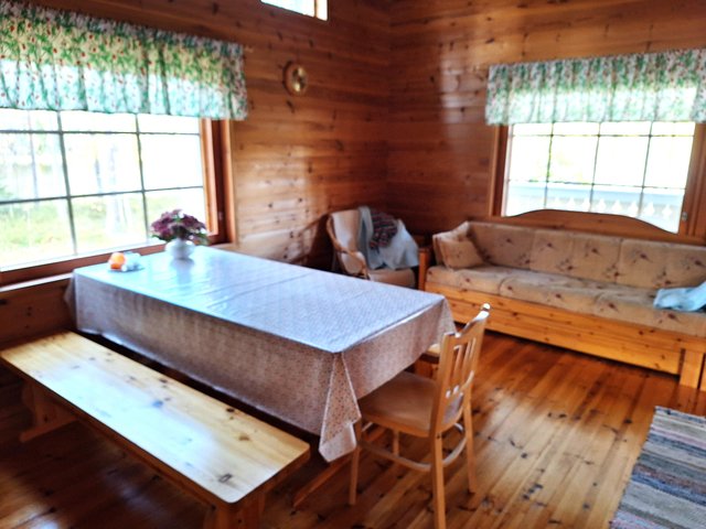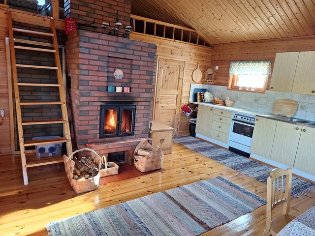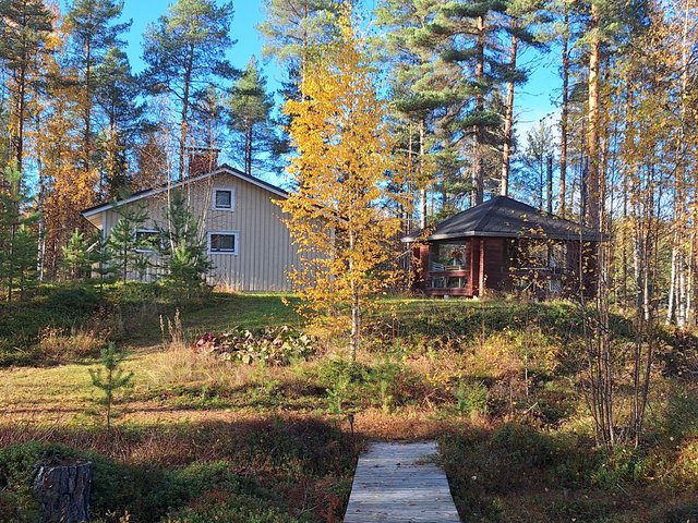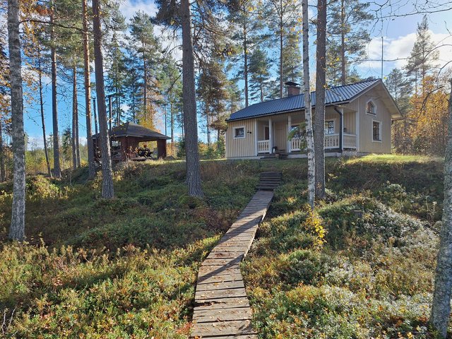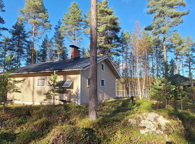 Mökissä on takka ja sähköt aurinkopaneelilla. Iso tupakeittiö on varustettu kaasuliedellä ja -jääkaappipakastimella. Mökissä on puulämmitteinen sauna ja tilava laatoitettu pesuhuone. Saunahetken jälkeen voit vilvoitella omalla terassilla tai pulahtaa viilentävään järveen laiturilta käsin. Ranta on suopohjainen, joten rannalta uiminen ei ole mahdollista.