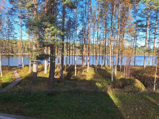 - Metsäinen pääosin mäntyä kasvava tontti. Mökki pienellä kumpareella.