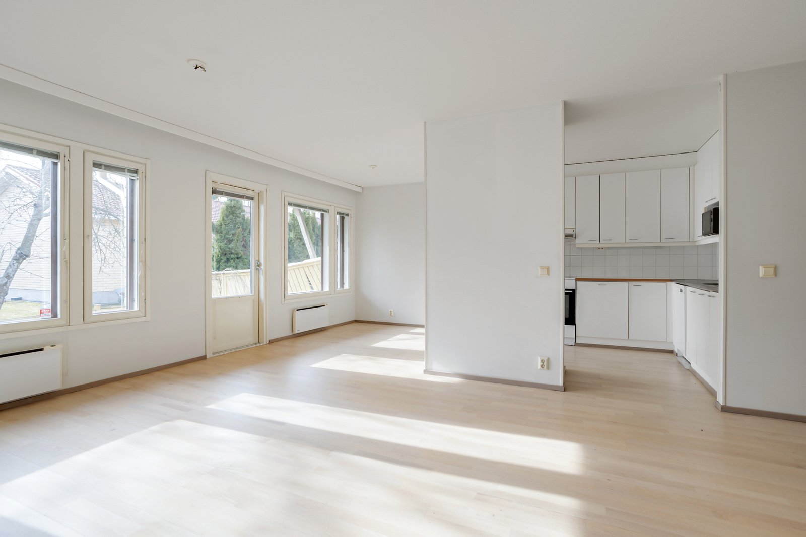 Rauhallisella paikalla päättyvän kadun varrella selkeäpohjainen 1-tasoinen rivitalohuoneisto. Kaksi tilavaa makuuhuonetta sekä avara olohuone/ruokailutila keittiön yhteydessä. Olohuoneesta on käynti omalle pienelle pihalle, missä on mukava istuskella vaikka saunan jälkeen. Erillinen wc joustavoittaa arkea. Asunnon välittömässä yhteydessä sijaitsee tilava, kylmä ulkovarasto. Lisäksi vielä erillinen irtaimistovarasto. Autopaikat sijaitsevat talon pihapiirissä.