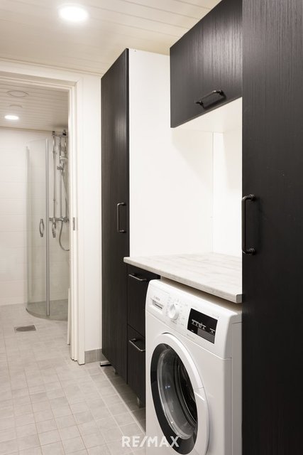 - Lämmin ulkovarasto, seinäkaapit ja vaatehuone