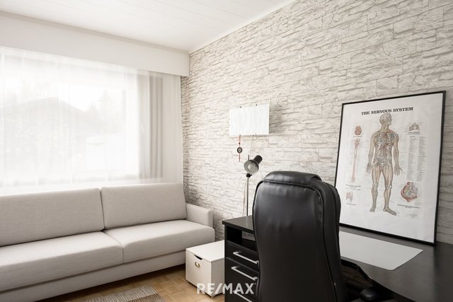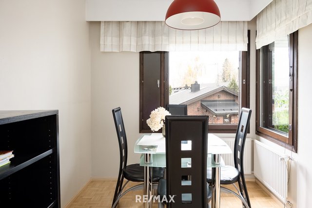 Asunnon avarat oleskelutilat ja takapiha luovat ihanteelliset puitteet niin rentoutumiselle kuin perheen yhteisille hetkille. Kolme makuuhuonetta tarjoavat tilaa koko perheelle, oma sauna ja takkahuone tuo arkeen ripauksen luksusta. Keittiö on hyvin varusteltu ja sopii mainiosti innokkaalle kokkaajalle.