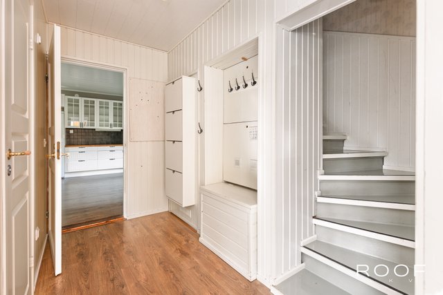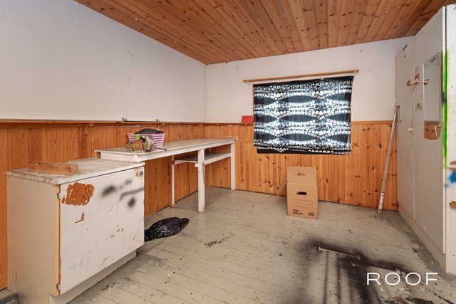 - Erillinen kodinhoitotila eteisen vieressä. VARUSTUS: Pesukoneliitäntä, kaivo LATTIA: Muovimatto SEINÄT: Puupaneli