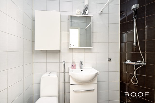 - VARUSTUS: Suihku, wc-istuin, peilikaappi, hana, allas, allaskaappi, bidee LATTIA: Laatta SEINÄT: Laatta