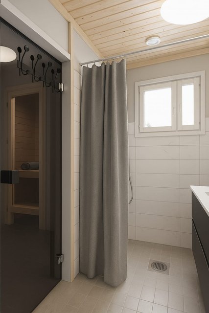 - Lattialämmitys, suihku, ja pesukoneliitäntä