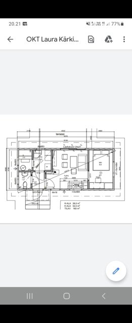 - Ei tarkistusmitattu. Pinta-ala voi siis olla edellä mainittua pienempi tai suurempi. Kerrosala 38 m² ja huoneistoala 34,5 m².