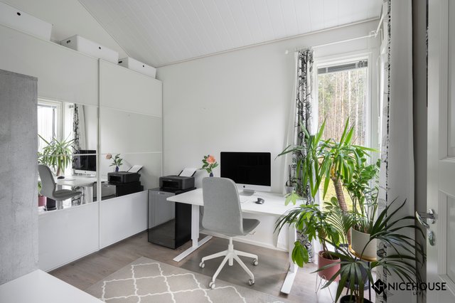 - Kolme makuuhuonetta ja rakennusluvalla voi rakentaa lisää asumista tukevia tiloja käyttöullakolle.
