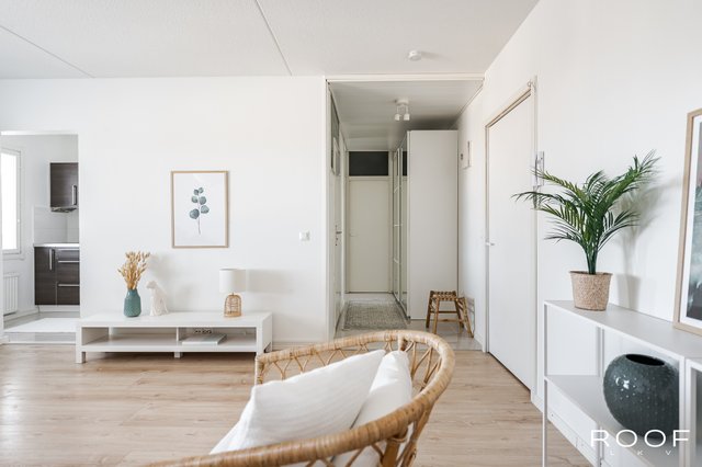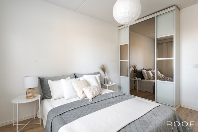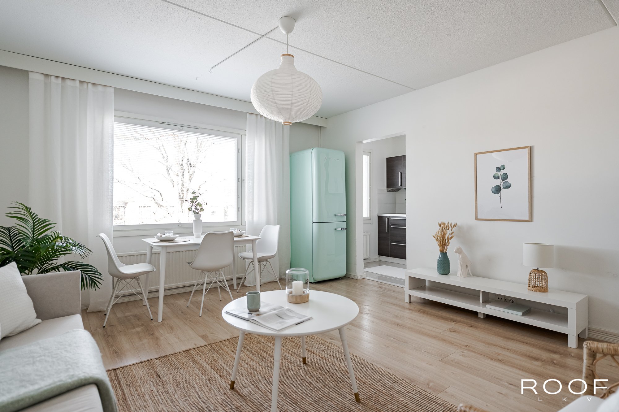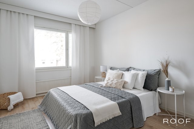 Asunnon pinnat ovat siistissä kunnossa ja muuttamaan pääseekin heti. Säilytystilaa on kivasti, kaksi isoa liukuovikomeroa ja tilava vaatehuone.