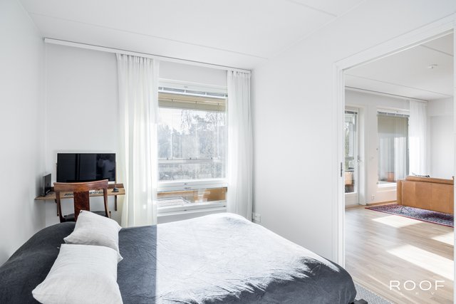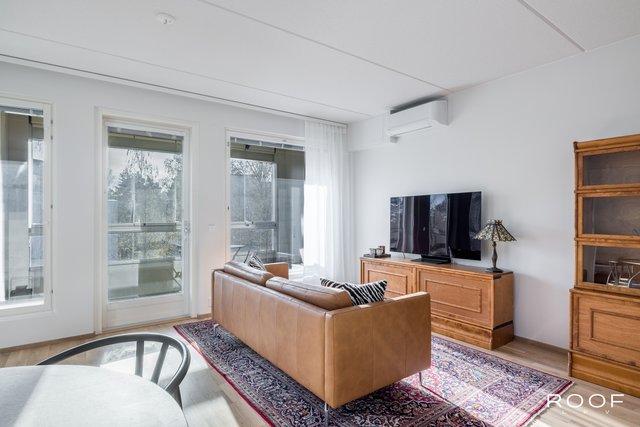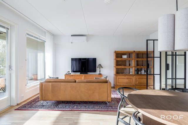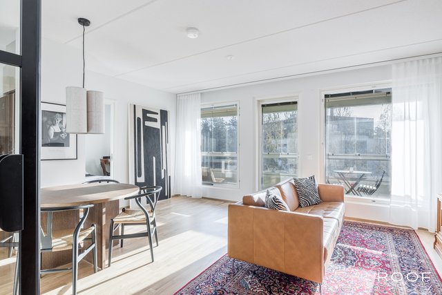 Tyylikkyyttä ja toimivuutta ylimmässä kerroksessa – tämä asunto tarjoaa viihtyisää asumista rauhallisin maisemin koko huoneiston levyiseltä parvekkeelta. Huoneistossa on onnistuneilla materiaalivalinnoilla luotu harmoninen ja moderni kokonaisuus, jossa mustat yksityiskohdat tuovat sisustukseen ryhtiä ja ajattomuutta.