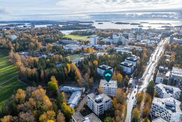 Sijainti on erinomainen – kaikki tarvittavat palvelut löytyvät kävelyetäisyydeltä Kauppakeskus Ainoasta ja metroasemalle kulkee hetkessä. Keskustan suuntaan liikkuminen on vaivatonta, ja lähellä on myös vehreitä ulkoilualueita arjen hengähdyshetkiin.