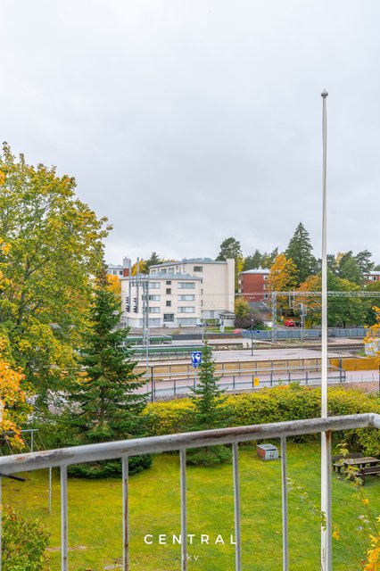 - Avarat näkymät sisäpihalle Huopalahden juna-aseman suuntaan