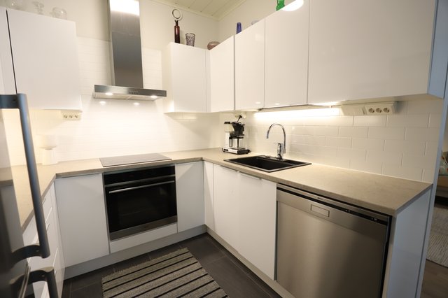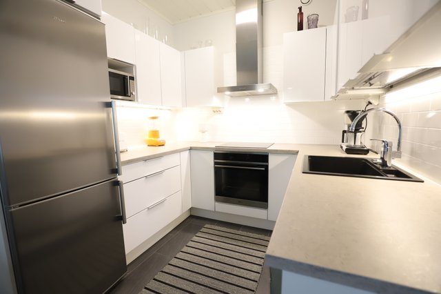 - Jääkaappipakastin, liesi, erillisuuni, liesituuletin, ja astianpesukone
