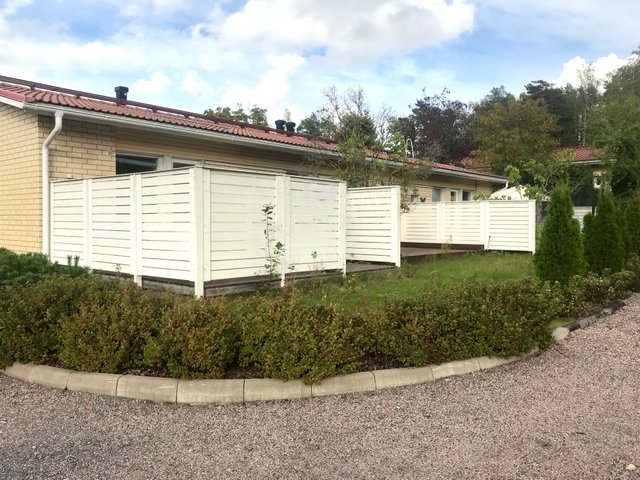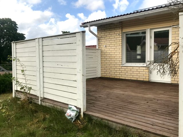 2025 kesällä osittain aidatun takapihan avoterassin lattialaudoitus öljytty.