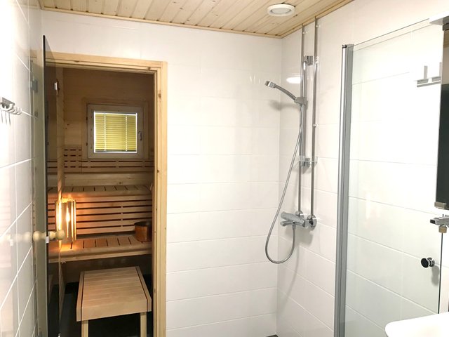 - Ikkunallinen sauna, joka uusittu 2024 yhtiön teettämän Märkätilasaneeraus erä 2:n yhteydessä. Varustus: Sähkökiuas, Lauteet. Seinämateriaalit: Puupaneeli. Lattiamateriaalit: Laatta.