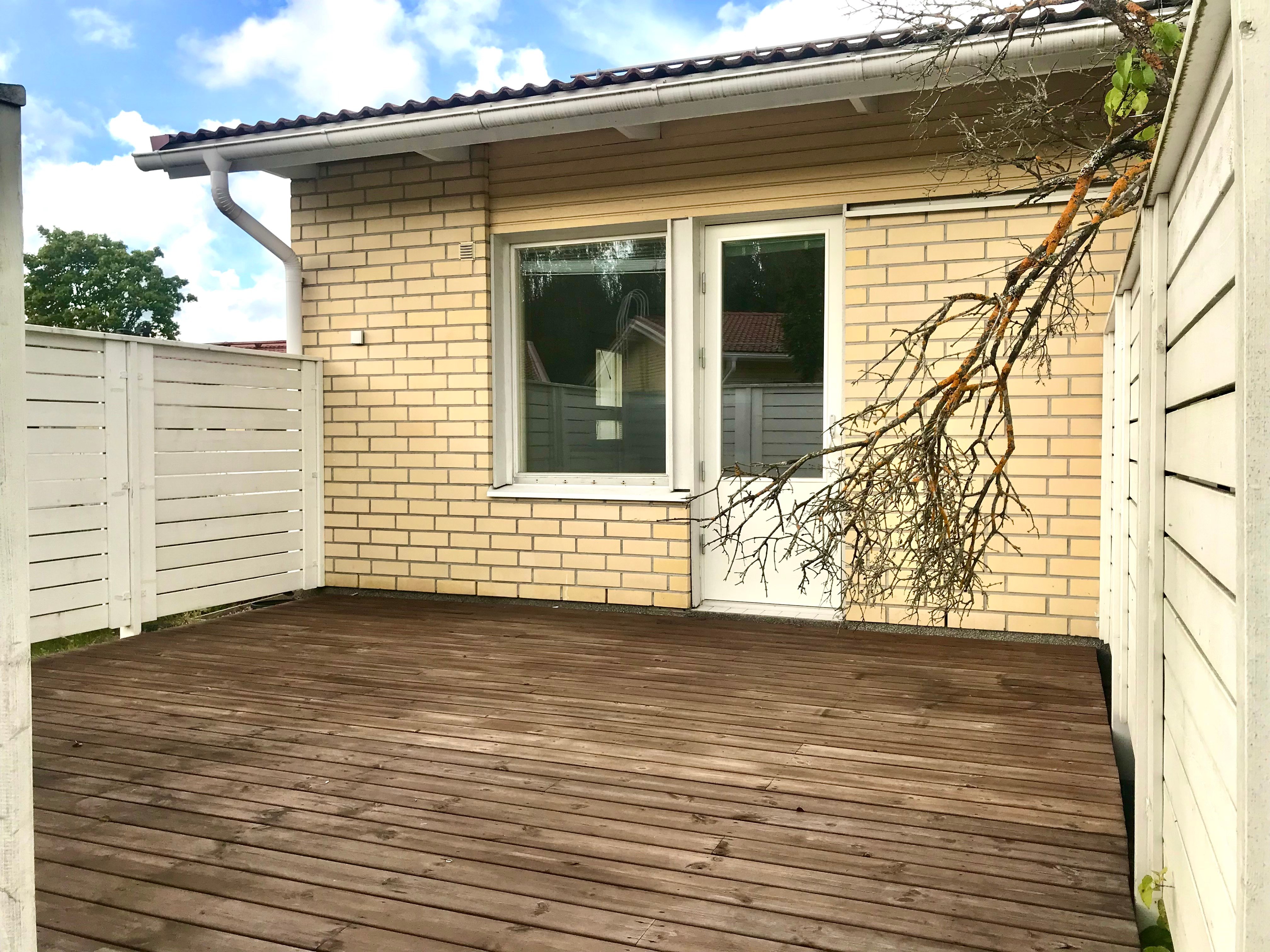 - Osittain aidattu avoterassi, johon käyntiovi olohuoneesta.