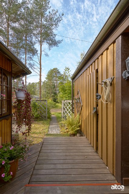 - Helppohoitoinen piha, jossa huvimaja, terassi ja kivetystä. Pihalta osittainen merinäköala.