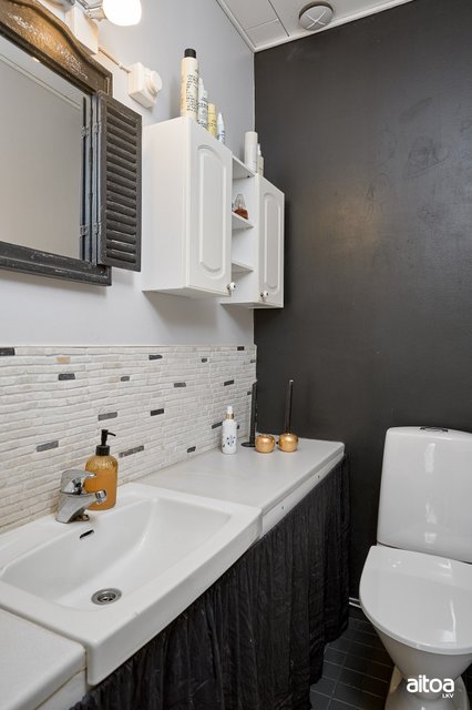 - Peili, pesuallas, hyllykkö, bideesuihku, wc-istuin.