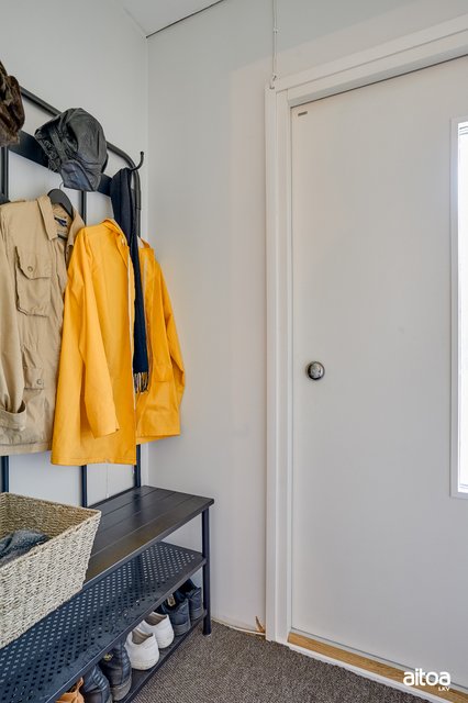 - Eteisen naulakko, ulkovaraston kaapisto, huvimaja.