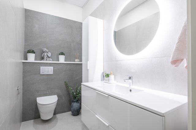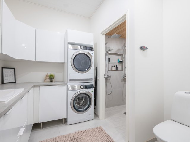 - WC-istuin, bidee-suihku, peilikaappi, lattialämmitys, ja pesukoneliitäntä