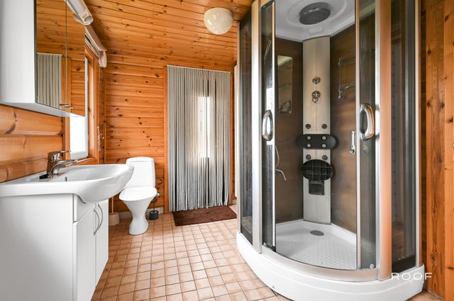 - WC-istuin, suihkukaappi, lattialämmitys, peilikaappi, pesukoneliitäntä, pesuallas, ja allaskaappi