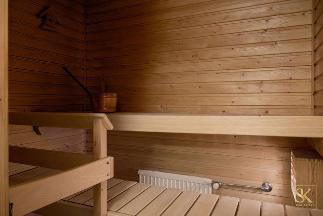 - VARUSTUS: Sähkökiuas, lauteet. SEINÄT: Puupaneeli. LATTIA: Laatta.