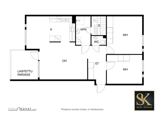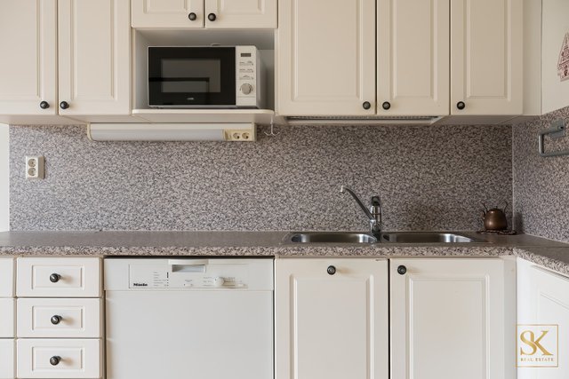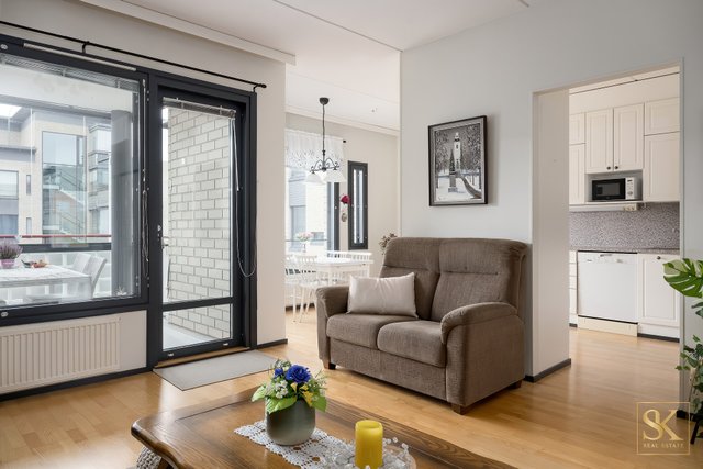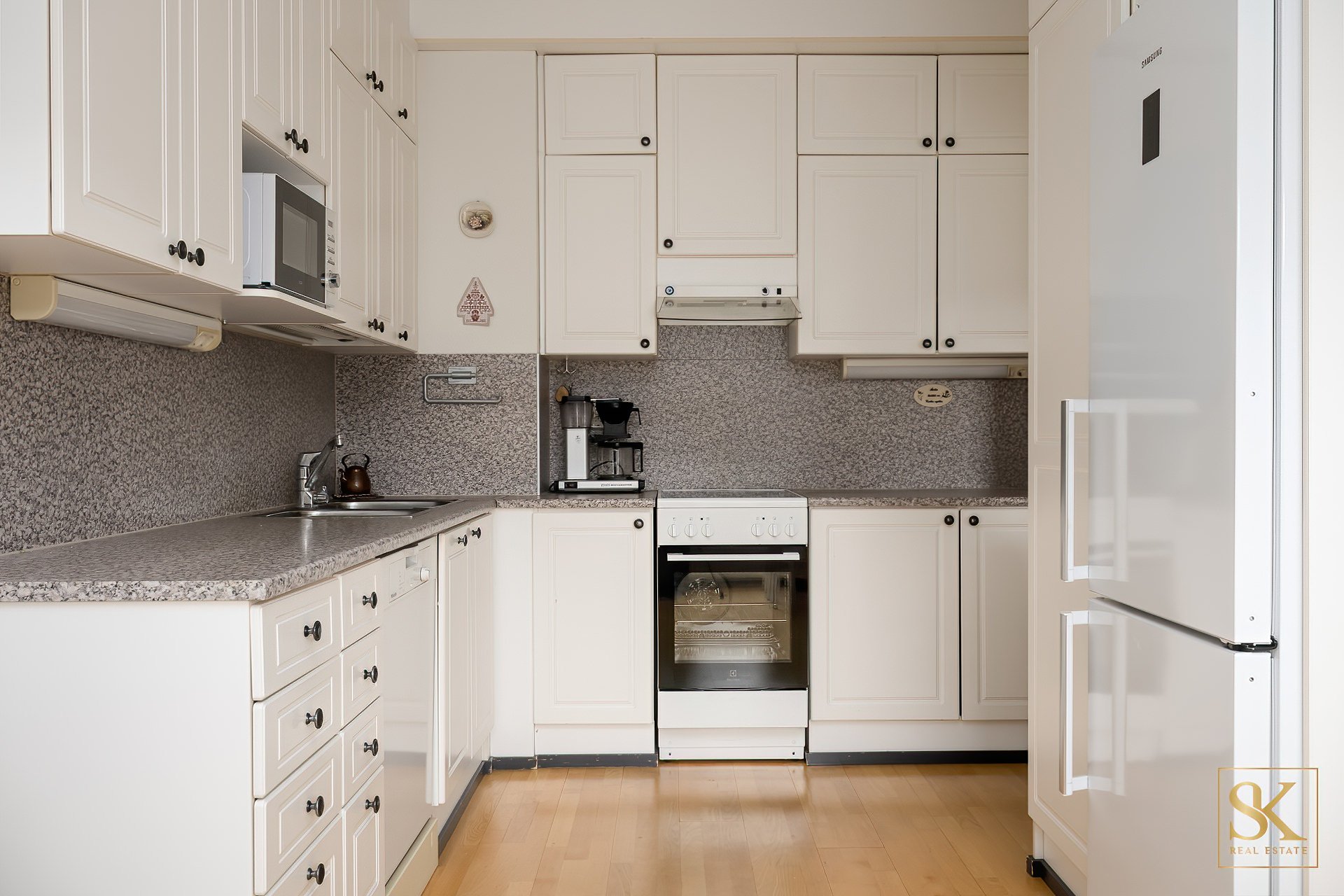 Keittiö on käytännöllinen ja tilava, tarjoten runsaasti kaappi- ja laskutilaa. Keittiön yhteydessä on ruokailutila, johon mahtuu suurempikin pöytä. Asunnossa on kaksi makuuhuonetta, ja säilytystilaa on runsaasti kaapistoissa. Erillinen wc tuo arkeen sujuvuutta ja oma sauna tarjoaa rentouttavan hetken päivän päätteeksi.