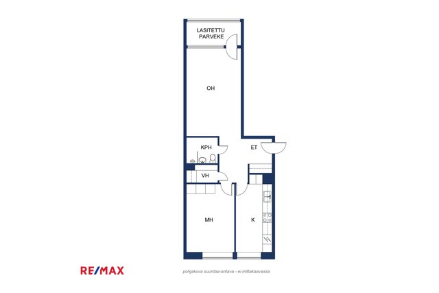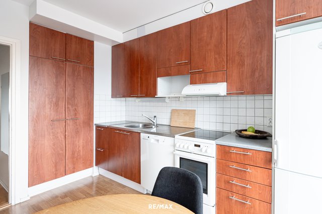 - Varustus: - Jääkaappi / pakastin - Astianpesukone - Liesituuletin - Liesi (keraaminen) - Kaapistot Lattia: laminaatti Seinät: maalattu