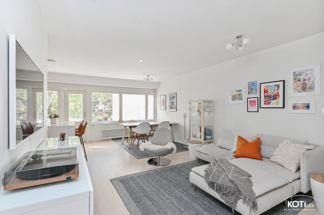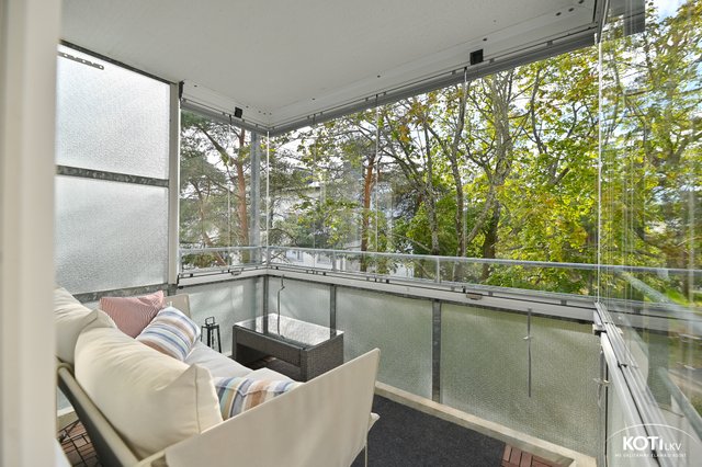 Lasitettu parveke avautuu vihreisiin maisemiin, ja tarjoaa lisätilaa rentoutumiseen keväästä pitkälle syksyyn. Kaksi hyvänkokoista makuuhuonetta antavat tilaa perheen elämään tai etätyöhön. Kylpyhuone on uusittu linjasaneerauksen yhteydessä, joten kaikki toimii juuri niin kuin pitääkin.