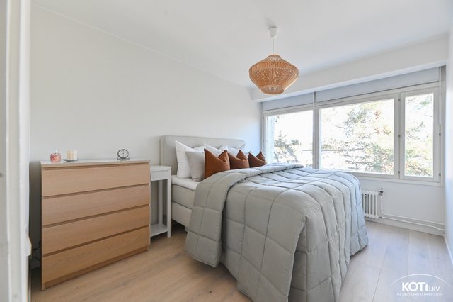 - Tilavat ja valoisat vaaleansävyiset makuuhuoneet. Toisesssa huoneessa on erillinen kaappi, joka kuuluu kauppaan.