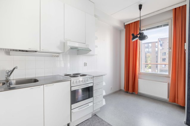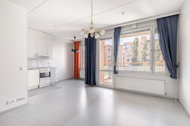 Olohuone ja keittiö muodostavat avaran ja yhtenäisen oleskelutilan, jonka jatkeena on iso länsiparveke. Alkovi tuo erillisen makuutilan ja lisää toimivuutta. Kylpyhuone on uusittu yhtiön toimesta ja arjen luksusta tuo oma sauna.