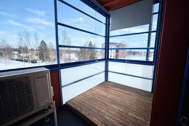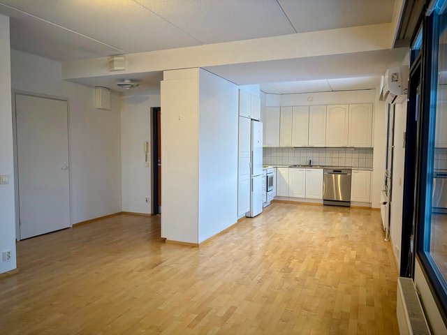 Asunnon pohjaratkaisu on selkeä ja ajaton: tilava olohuone ja keittiö muodostavat valoisan kokonaisuuden, jota täydentää etelään avautuva lasitettu parveke – paikka, jossa voi nauttia aamukahvit aikaisin keväällä ja pitkälle syksyyn. Huoneistokohtainen ilmanvaihto sekä jäähdyttävä ilmalämpöpumppu takaavat miellyttävän sisäilman ympäri vuoden.
