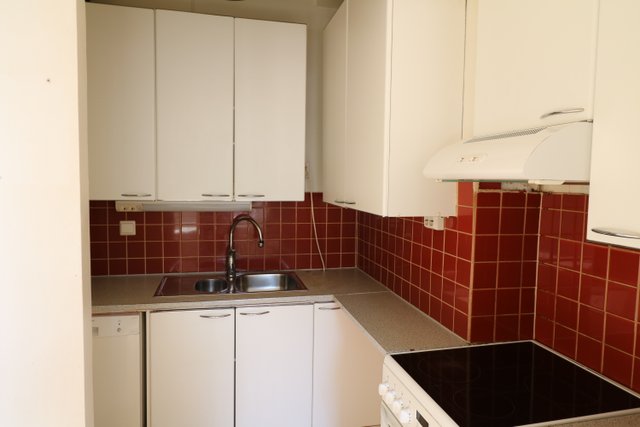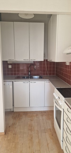 Asunto tarjoaa tyylikkään ja toimivan pohjaratkaisun, jossa jokainen neliömetri on hyödynnetty optimaalisesti. Olohuoneen lautalattiat on hiljattain hiottu ja lakattu, luoden tilaan lämpimän ja kutsuvan ilmeen. Alkovissa on tilaa 120 cm leveälle patjalle, ja seinällä oleva persoonallinen maalaus lisää huoneen viehätystä. Keittiössä valkoiset kaapistot ja laminaattitasot tarjoavat toimivan työskentelytilan, ja asialliset kodinkoneet.