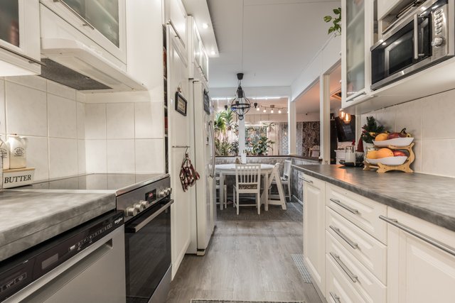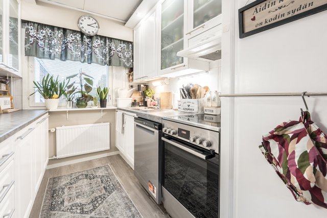 - Jääkaappipakastin, liesi, astianpesukone (2025), ja uuni (Kiertoilmauuni)