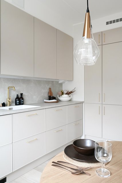 - Ajattoman tyylikäs Charmia keittiö on valmistunut 12/2025. Varustus: kalusteisiin upotettu induktioliesitaso ja erillisuuni (Electrolux), liesituuletin (AEG), integroitu astianpesukone (Electrolux), integroitu jääkaappipakastin (Vestfrost), laminaattitasot, valkoinen komposiittiallas (Blanco) ja hana (harjattu messinki, Damixa). Seinät: maalattu, välitilassa laminaatti. Lattia: laminaatti (Novafloor Oy: 1601446 Parador Classic 1050 Tammi Studioline hiottu 1-sauva mattapinta).