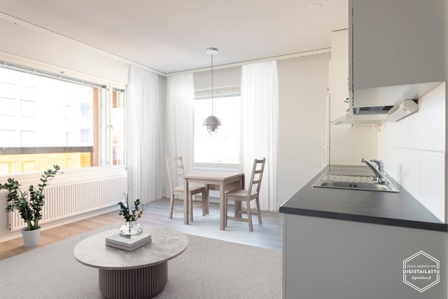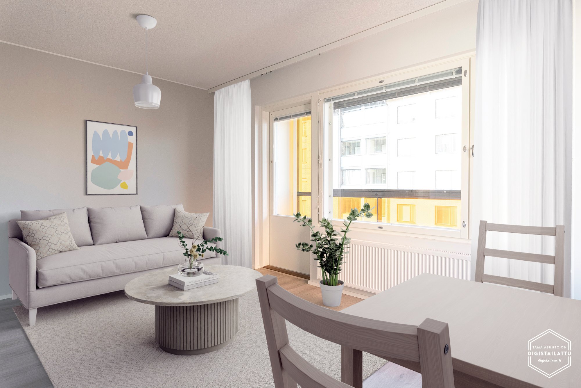 Tässä kodissa on kaikki, mitä modernilta kerrostaloasumiselta voi toivoa: Koko asunnon levyinen lasitettu parveke auringon suuntaan, siistit ja toimivat tilat ja varustelu, viihtyisä ympäristö palveluineen ja toimivat kulkuyhteydet julkisilla ja omalla autolla. Kulmasijoittelun ansiosta asunto on poikkeuksellisen valoisa ja avaran tuntuinen, kun ikkunoita on kolmeen suuntaan.