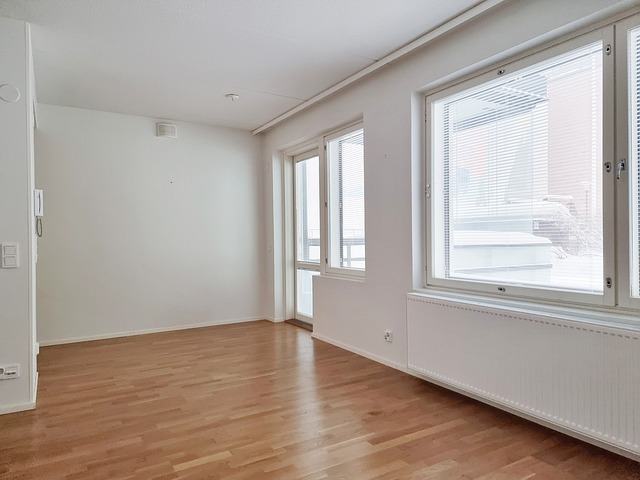Tämä vuonna 2015 valmistunut kaksio sijaitsee talon katutasossa, sisäpihan puolella. Huoneiston ikkunoista näkymät rauhalliselle ja liikenteeltä suojassa olevalle oleskelualueelle.