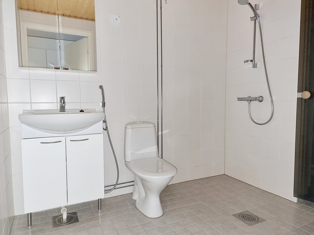 - Lattialämmitys, peilikaappi, pesukoneliitäntä, suihku, ja wc-istuin