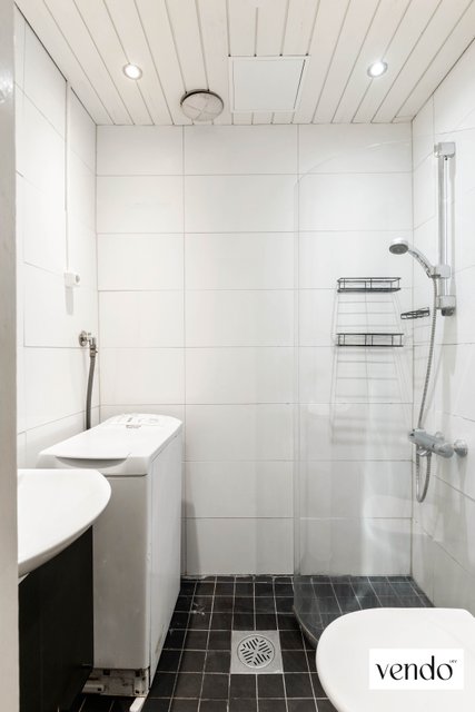 - WC-istuin, suihkuseinä, suihku, ja pesukone (Sisältyy kauppaan)