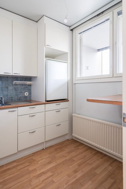 Asunnon pinnat ovat siistissä kunnossa. Kylpyhuone on remontoitu 2005. Lattiapinnat kestävää laminaattia, tuulikaappi laatoitettu ja säilytystilaa mukavasti. Erillinen kompakti keittiö, johon mahtuu pieni pöytä.