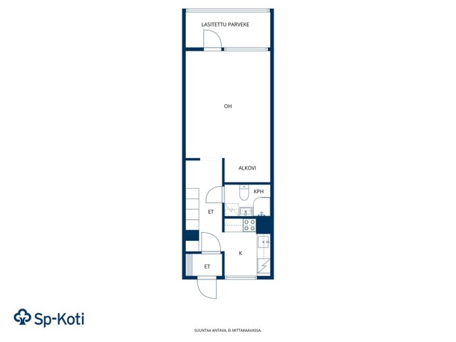 Hyväkuntoinen iso yksiö alkovilla ja huoneiston levyisellä lasitetulla parvekkeella. Ikkunat kahteen suuntaan. Sujuva rauhallinen sijainti; keskustan kattavat palvelut ja juna-asema vain reilun kilometrin päässä.