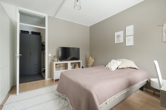 Sijainti on rauhallinen ja viihtyisä, mutta samalla arkea helpottavan toimiva. Lyhyt matka moottoritielle ja keskustaan tekee liikkumisesta sujuvaa, ja lähikauppa sijaitsee vain noin 850 metrin päässä. Alue sopii erinomaisesti niin perheille kuin rauhallista asumista arvostaville, jotka haluavat yhdistää hyvät kulkuyhteydet ja miellyttävän asuinympäristön.