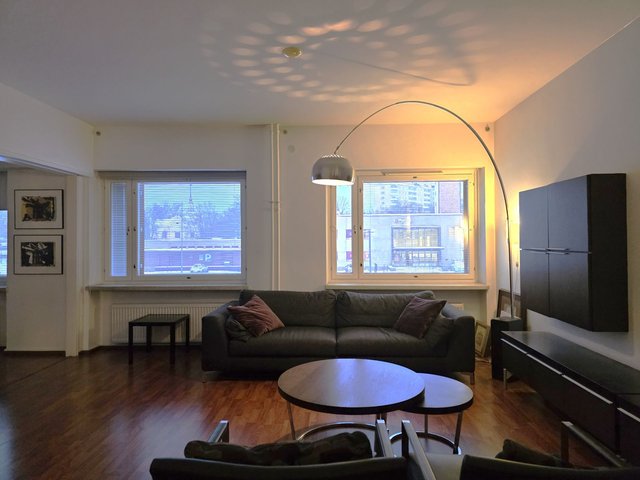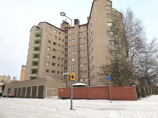 - lounas-luode-koillinen läpitalon päätyhuoneisto näkymät Paasikivenaukiolle, Fellmaninpuiston ja Ranta-Kartanon suuntaan
