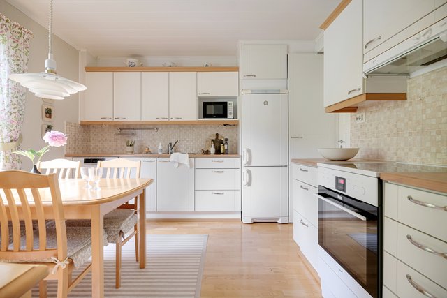- Jääkaappipakastin, erillisuuni, astianpesukone, liesituuletin, ja erillinen pakastin (varastossa)