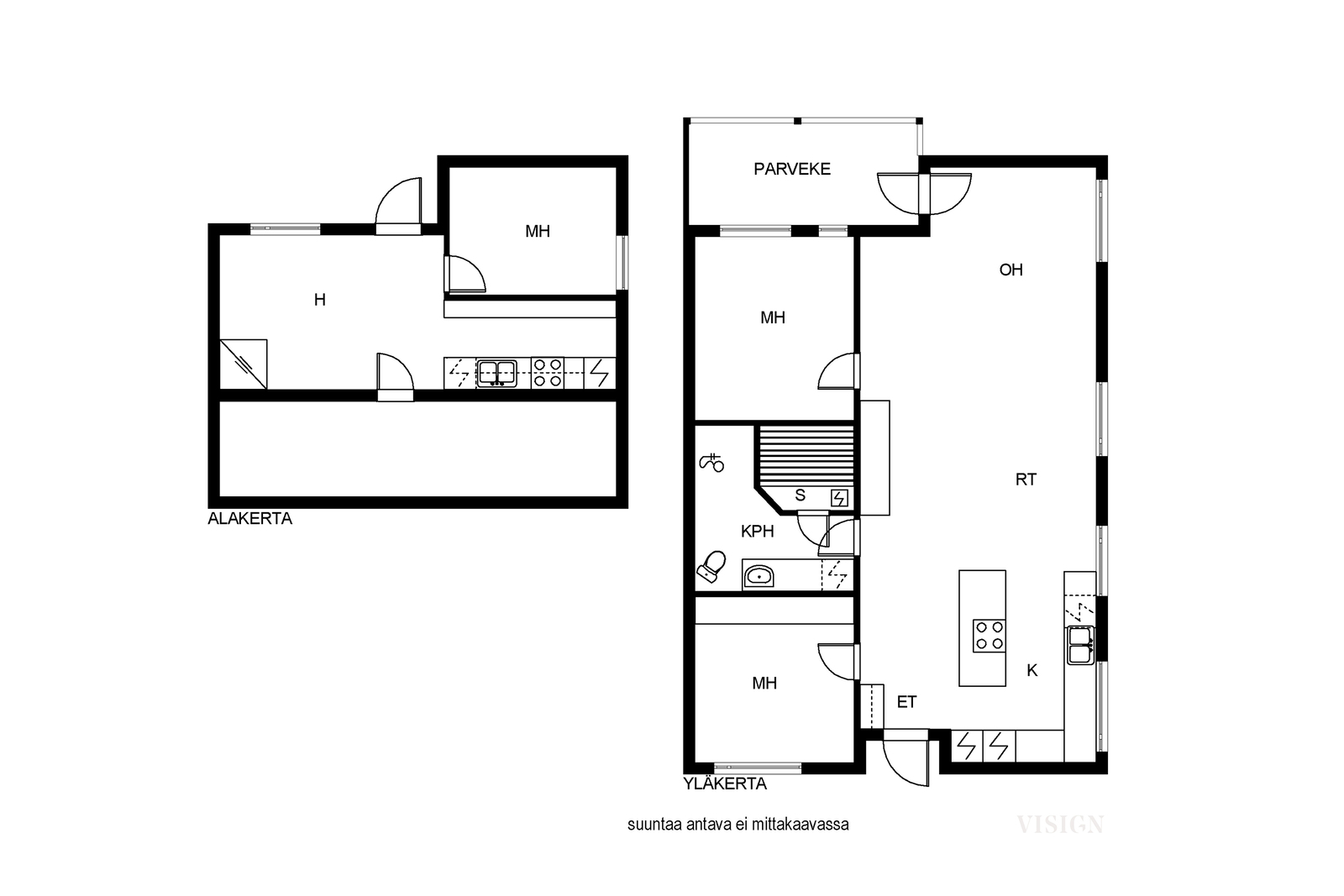 - Erillisuuni, jääkaappi, astianpesukone, erillinen pakastin, ja liesitaso, liesituuletin / hormi