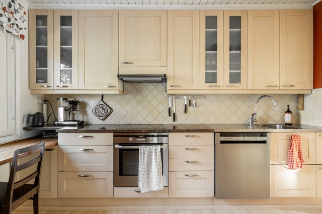 - Jääkaappipakastin, astianpesukone, ja liesi