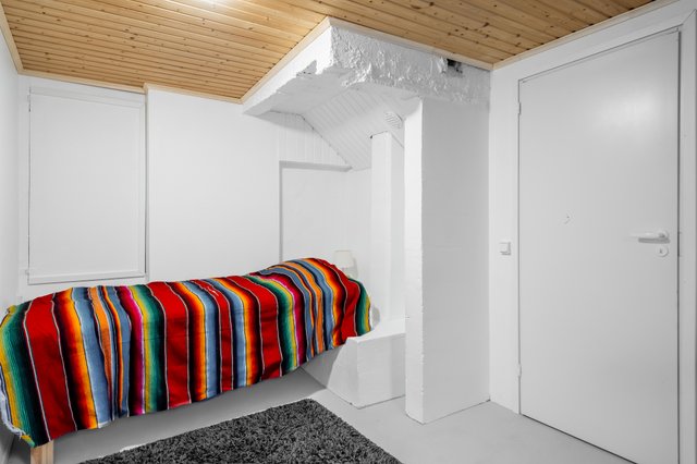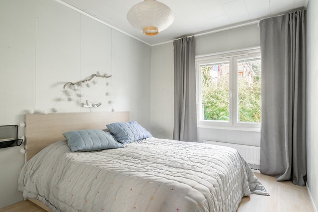 - Yhdessä makuuhuoneessa lattia laminaattia ja seinäss sisustuslevy, toisessa lattia laminaattia ja seinät maalattu.