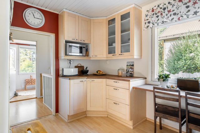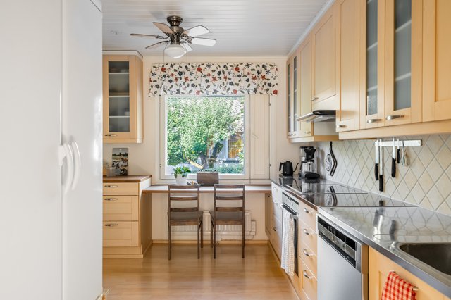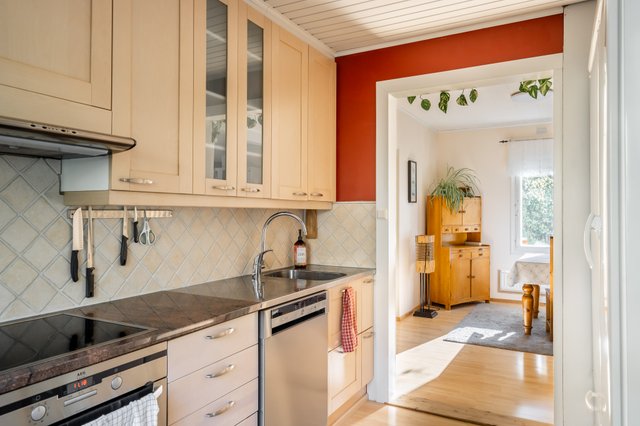 Talon sisätiloissa on kolme makuuhuonetta. Keittiö on varustettu nykyaikaisilla laitteilla, kuten jääkaappi-pakastimella, astianpesukoneella ja keraamisella liedellä. Kylpyhuoneessa on lattialämmitys ja pesukoneliitäntä, mikä tekee arjesta sujuvaa.
